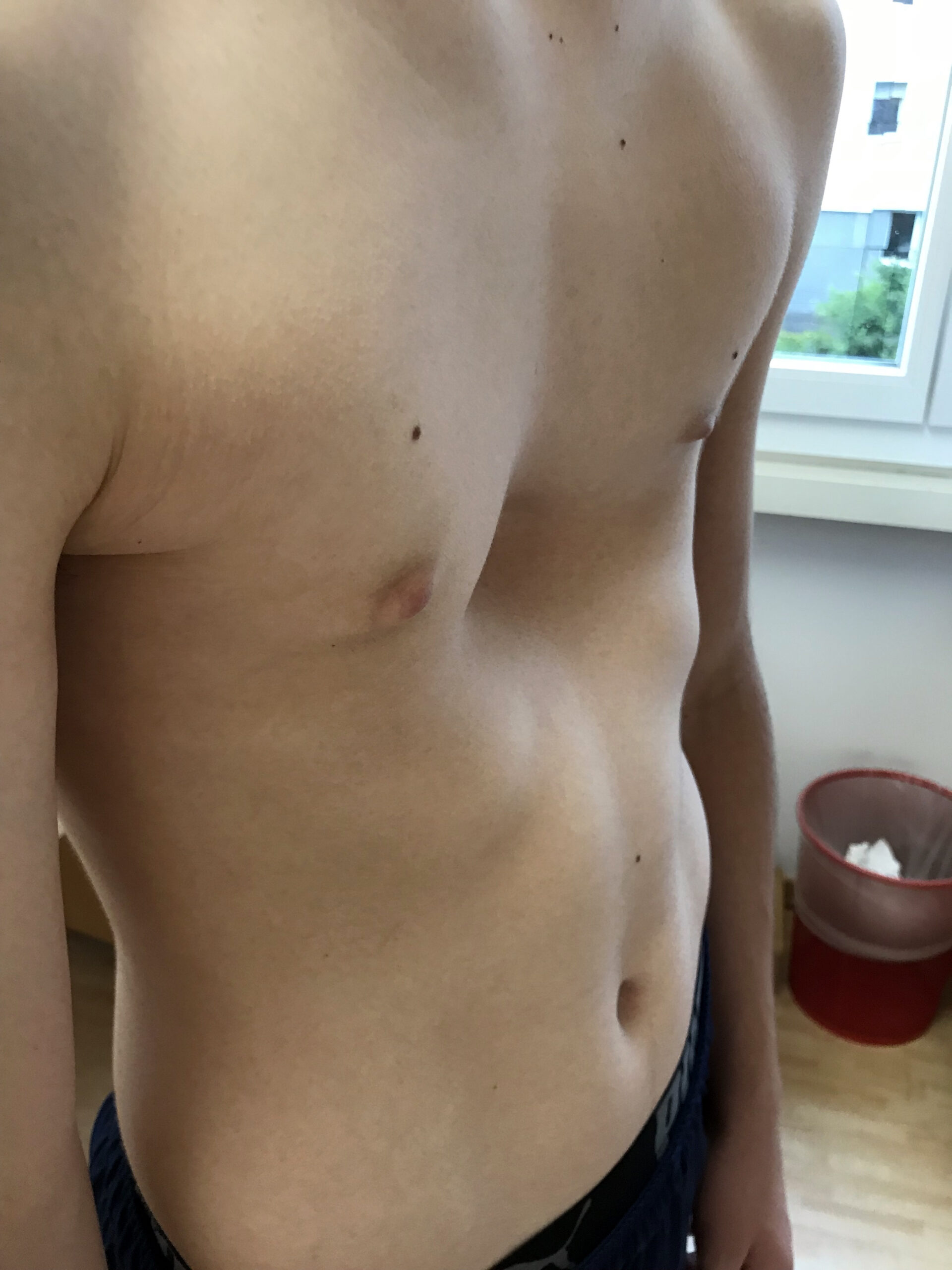 The case story illustrates the “silent” symptoms of pectus excavatum. For years, her shortness of breath and dizziness were dismissed as acid reflux or anxiety. It was only during her first pregnancy that the severity of her chest wall deformity was recognized, as the growing baby pushed her diaphragm up, further compressing her heart and leaving her bedbound. After consulting Dr. Schewitz and undergoing the Nuss procedure, even while pregnant with her second child, she experienced an immediate resolution of her symptoms. She was able to live an active life, gardening up until the birth of her third child, a feat that would have been impossible without surgical correction.